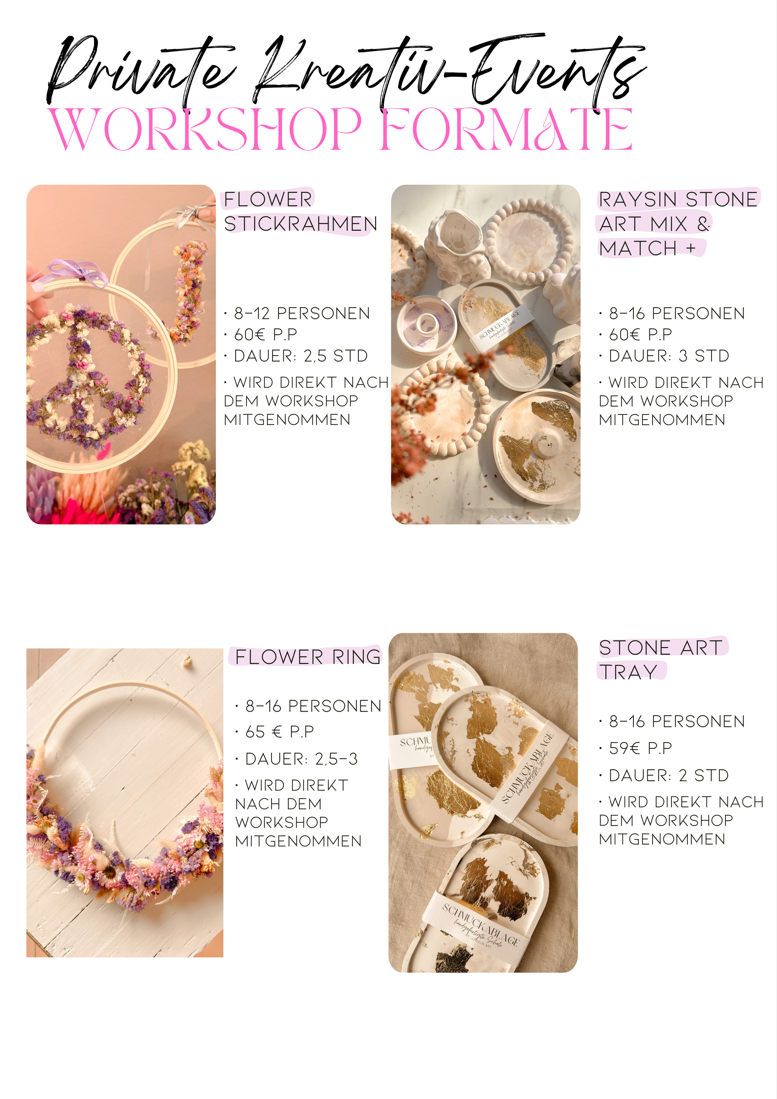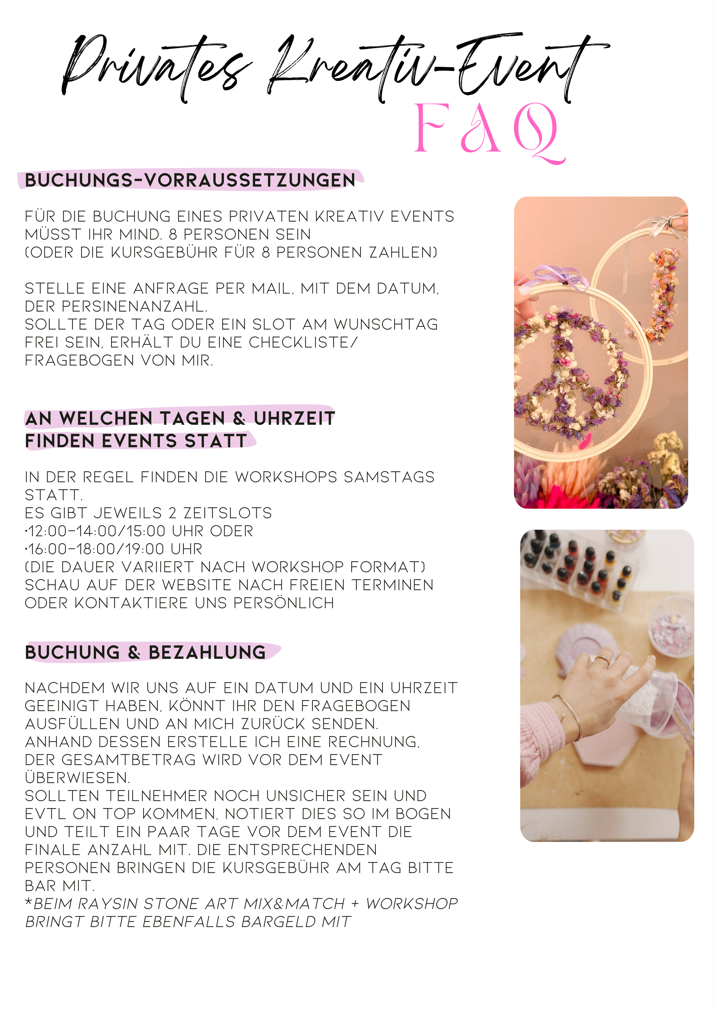 Bei bereits terminierten Workshops, kannst du unter dem Reiter booking einfach direkt über meine website buchen (also schau dort mal).