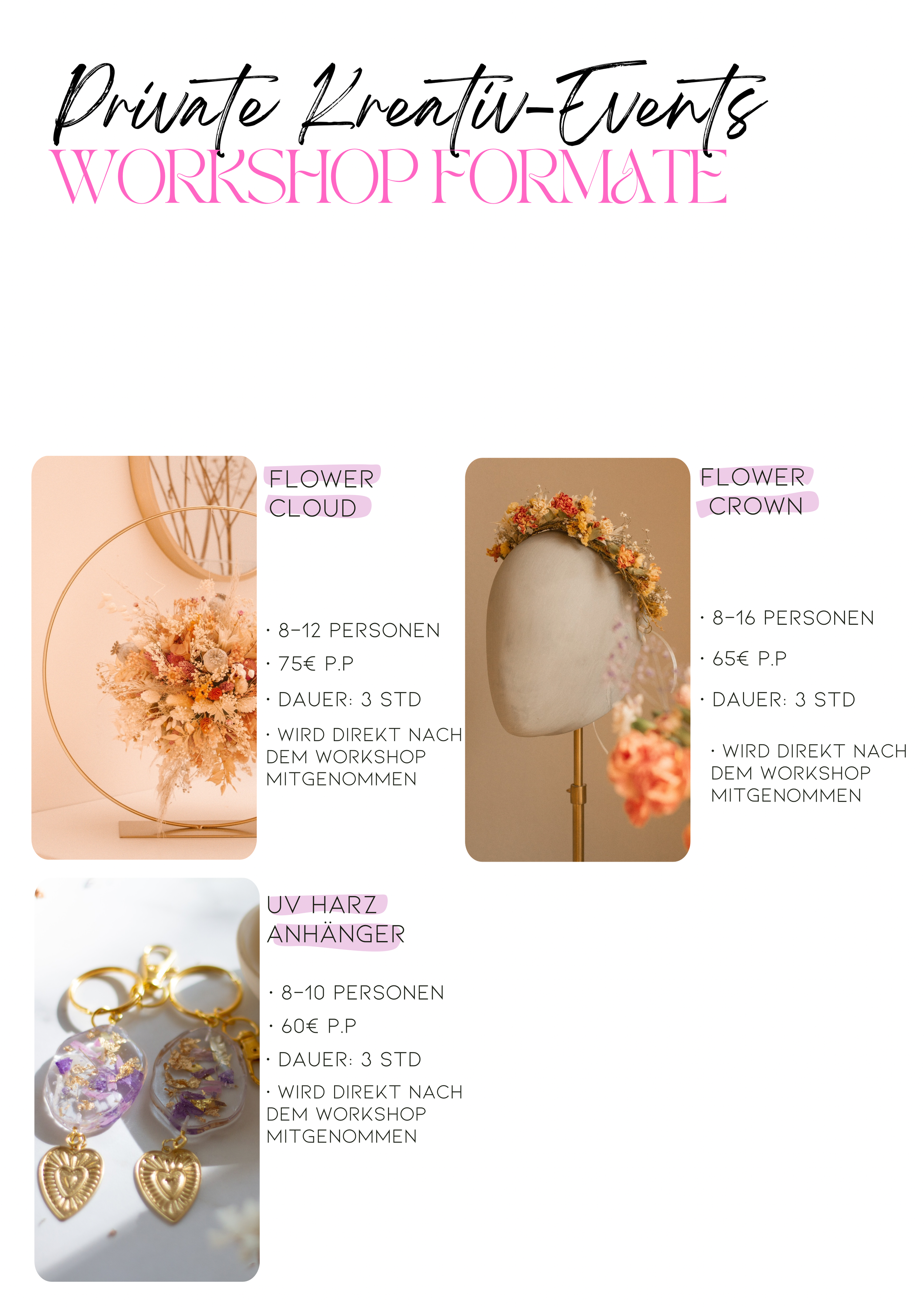 Tauche ein in die Kunst es (UV) Harzes & lerne mehr über Kunststoffe kennen. Gestalte dir 4 individuelle Anhänger (inkl. Verschraubung & süßen Anhängerdetails wie abgebildet) Diese nimmst du am Ende des Workshops mit nach Hause. (Du kannst auch silberne Anhänger machen)